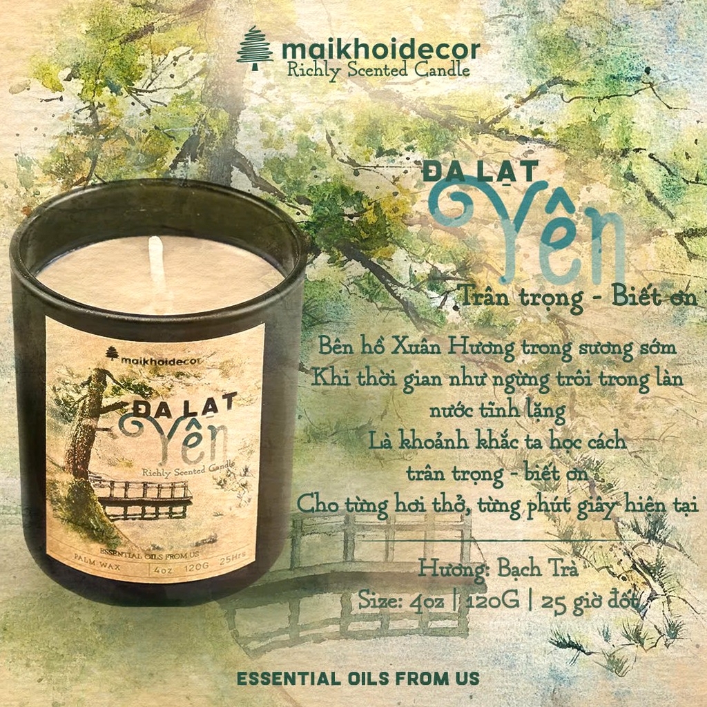 *Hũ nến thơm size 4oz (120G), tinh dầu nhập khẩu, sáp Cọ, nắp gỗ thông, thời gian đốt 25 giờ với hương thơm:
